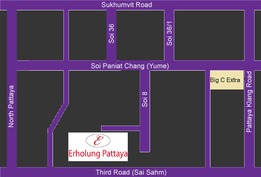 Unser Apartment liegt sehr zentral in Pattayaklang ca.600 m. vom Big C Extra (Carrefour) Einkaufszentrum enfernt. Dort fahren die beliebten Bath-Taxen und man kann sehr guenstig jeden Punkt Pattayas besuchen. |